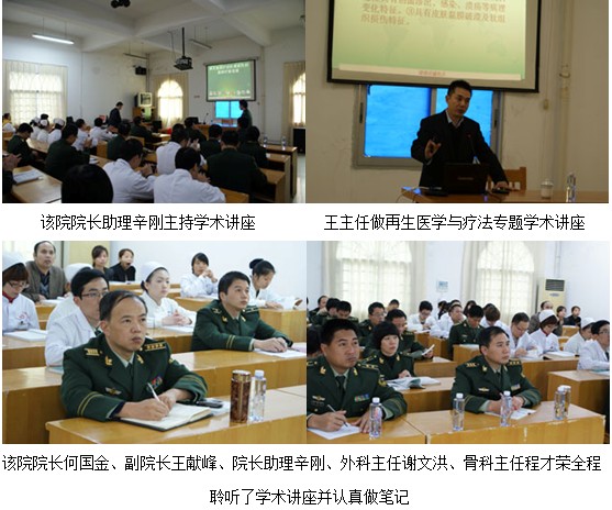 學(xué)術(shù)講座于當(dāng)日下午3時30分在該醫(yī)院會議室舉行,學(xué)術(shù)活動由該醫(yī)院院長助理辛剛主持,在專題學(xué)術(shù)講座中,王主任向?qū)W員們介紹了再生復(fù)原療法的概念、闡述了皮膚原位再生醫(yī)療技術(shù)原理、與傳統(tǒng)醫(yī)學(xué)療法相比再生醫(yī)療技術(shù)的優(yōu)越性,以及近期在英國外科雜志及國際燒傷雜志發(fā)表的有關(guān)“磺胺嘧啶銀及含銀敷料用于創(chuàng)傷(含燒傷)創(chuàng)面,造成創(chuàng)面愈合延遲、增加疼痛和感染率”等最新觀點;并著重講解了濕潤暴露療法、半暴露療法和包扎療法的操作方法及要點;通過臨床病例圖片側(cè)重分析褥瘡、典型糖尿病足、下肢潰瘍等外科常見創(chuàng)傷治療前后過程。重點講述了再生療法在糖尿病足等難愈性創(chuàng)傷治療新進展的情況。通過視頻講述了規(guī)范的換藥方法。治療后理想的愈合效果讓學(xué)員們對再生醫(yī)療技術(shù)有了更深刻的認(rèn)識,得到了在場領(lǐng)導(dǎo)及學(xué)員的認(rèn)可。