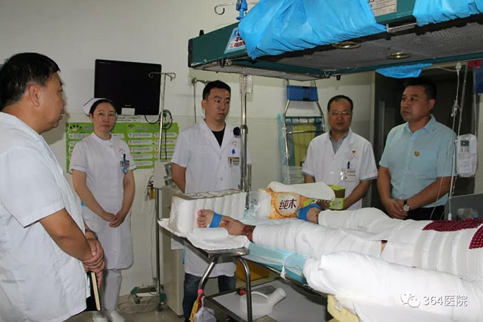 院長李廣衡說,364醫(yī)院燒傷科是襄陽市臨床重點(diǎn)???,幾十年來我們已成功救治幾萬名燒燙傷患者,始終秉承 “把病人的事當(dāng)自己的事”的服務(wù)理念,接到患者家屬的求助,我院立即協(xié)調(diào)組織醫(yī)療救援小組,驅(qū)車千里趕至杭州,接回了在外落難的老鄉(xiāng),綠色通道、減免費(fèi)用、發(fā)動捐款,多渠道幫助患者籌集治療款。同時也感謝“中國紅十字基金會徐榮祥再生生命公益基金”的愛心捐助,讓任海鵬成為了該基金在襄陽市的第二名受益者,希望任海鵬能早日康復(fù),回歸社會,也希望有更多貧困家庭的燒傷患者能夠獲益。