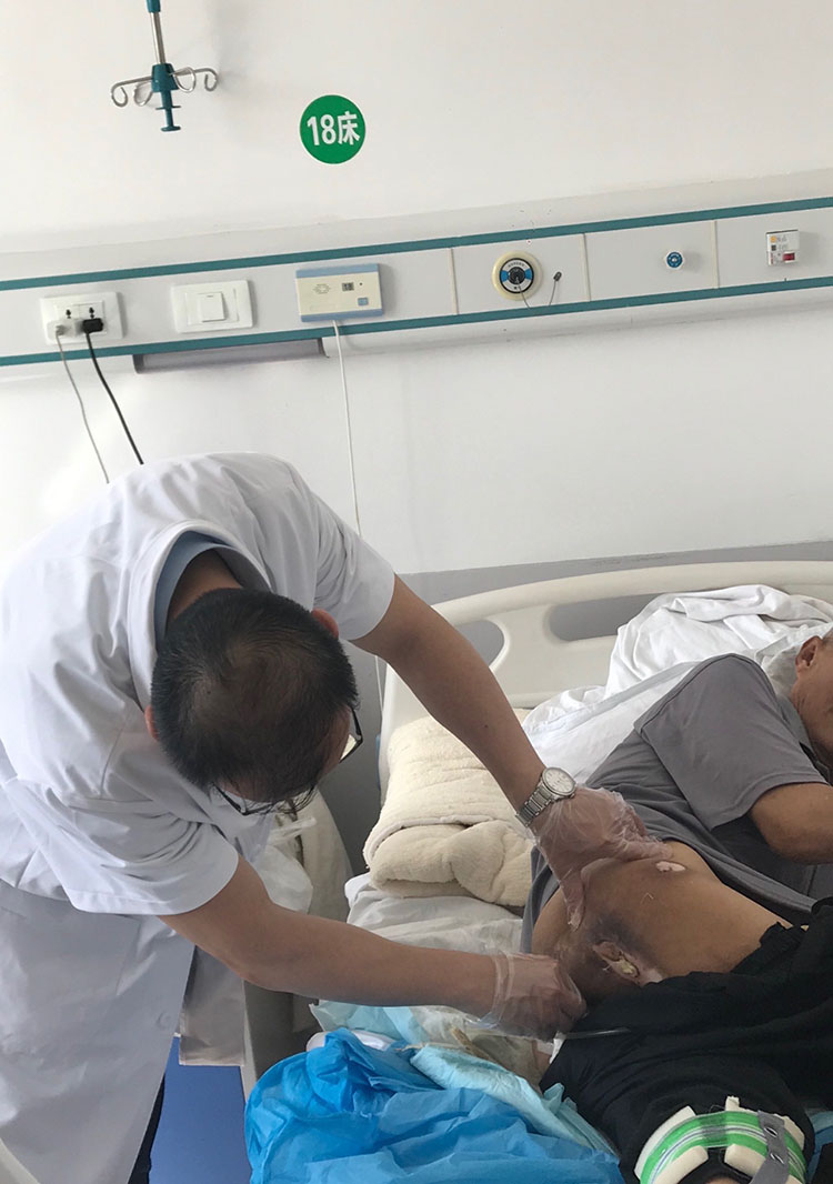 6月4日,再生醫(yī)學(xué)知名專(zhuān)家、《中國(guó)燒傷創(chuàng)瘍雜志》常務(wù)編委趙瑞慶主任,在同煤二醫(yī)院對(duì)三例壓瘡患者進(jìn)行了會(huì)診,通過(guò)現(xiàn)場(chǎng)換藥與溝通,使醫(yī)生和家屬對(duì)創(chuàng)面的治療有了全新的認(rèn)識(shí)。