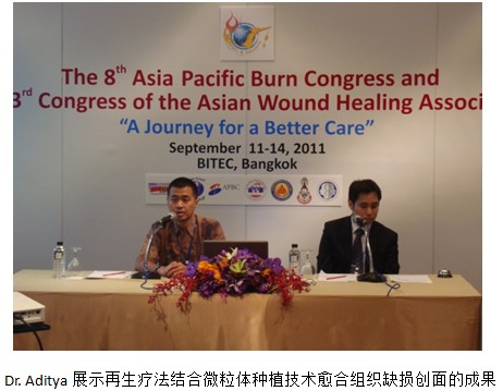 來(lái)自馬來(lái)西亞的Dr. Margaret和Dr. Farid以及來(lái)自印尼的Dr. Aditya都是在各臨床上應(yīng)用美寶再生醫(yī)學(xué)一年以上,積累了一定的再生技術(shù)技能及經(jīng)驗(yàn)的骨干醫(yī)生,Dr. Aditya還曾經(jīng)在09年赴四川多家基地醫(yī)院進(jìn)修,并在之后的再生醫(yī)學(xué)推廣應(yīng)用上起到了相當(dāng)?shù)耐苿?dòng)作用。這三名專家從燒傷、斷指及微粒體種植技術(shù)等多角度展示出了美寶再生醫(yī)療技術(shù)、產(chǎn)品應(yīng)用的優(yōu)越性及廣泛性,使美寶再生醫(yī)學(xué)更加客觀、更加具有說服力地傳播給與會(huì)聽眾。