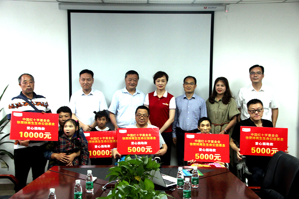 2019年6月27日,中國(guó)紅基會(huì)徐榮祥再生生命公益基金為雅安市人民醫(yī)院的5名貧困患者送去愛(ài)心捐贈(zèng),幫助他們戰(zhàn)勝病魔,度過(guò)難關(guān)。