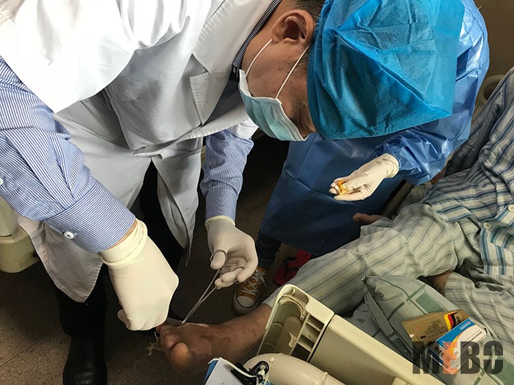 10月28日,北京榮祥再生醫(yī)學(xué)研究所副所長(zhǎng)、中國(guó)中西醫(yī)結(jié)合學(xué)會(huì)燒傷專(zhuān)業(yè)委員會(huì)常務(wù)委員、《燒傷創(chuàng)瘍雜志》副總編輯、應(yīng)用燒傷創(chuàng)瘍?cè)偕t(yī)療技術(shù)治療糖尿病足領(lǐng)域?qū)<?、研究員王洪生教授應(yīng)邀來(lái)到佛山市南海區(qū)人民醫(yī)院燒傷整形科會(huì)診一例40%燒傷患者,并應(yīng)邀指導(dǎo)該科8例燒傷、糖足、大壓瘡患者換藥,臨床幫帶效果明顯。