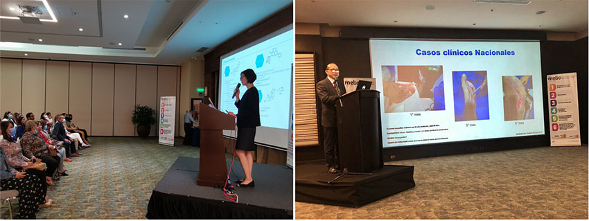 培訓(xùn)的議題主要分為兩大部分:一、再生醫(yī)療技術(shù)的全球發(fā)展,二、再生醫(yī)療技術(shù)在拉美地區(qū)的現(xiàn)階段發(fā)展。培訓(xùn)伊始,首先由國際再生醫(yī)學(xué)與創(chuàng)面修復(fù)學(xué)會北京辦公室主任徐巍巍進(jìn)行演講。她首先系統(tǒng)地介紹了再生醫(yī)療技術(shù)的發(fā)展歷史及諸項專利,為參會者展現(xiàn)出再生醫(yī)療技術(shù)的強(qiáng)大科研背景與科學(xué)實力。接著,她又著重分析了再生醫(yī)療技術(shù)在提供生理性濕潤環(huán)境、緩解疼痛、控制炎癥、預(yù)防感染、改善瘢痕、液化壞死組織及促進(jìn)皮膚原位再生等方面的作用機(jī)制,清晰的梳理了再生醫(yī)療技術(shù)在創(chuàng)面治療領(lǐng)域的巨大優(yōu)勢。最后,她分享了近年來在全球開展的多項最新臨床研究結(jié)果,以及多個復(fù)雜病例的分享,直觀地呈現(xiàn)出再生醫(yī)療技術(shù)的顯著治療效果。