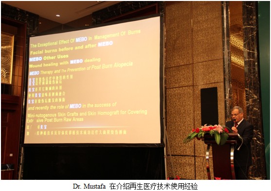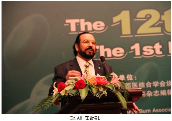 第一位演講的是來(lái)自阿聯(lián)酋迪拜的Ali Al-Numairy 醫(yī)生,他是海灣??漆t(yī)院整形外科主任,國(guó)際外科醫(yī)師協(xié)會(huì)副主席(阿聯(lián)酋地區(qū)主席)20年再生醫(yī)療技術(shù)使用經(jīng)驗(yàn)是再生醫(yī)療技術(shù)的忠實(shí)粉絲。 他演講的題目是再生醫(yī)療技術(shù)在創(chuàng)面愈合中的作用。Ali 教授從創(chuàng)面愈合的機(jī)理,疤痕形成的原因引出了創(chuàng)面愈合所需的理想條件與環(huán)境,進(jìn)而指出再生醫(yī)療技術(shù)是唯一個(gè)可以滿足創(chuàng)面生理愈合所有條件的技術(shù),同時(shí)跟強(qiáng)調(diào)這項(xiàng)技術(shù)正符合了21世紀(jì)燒傷治療的最新理念既:燒傷的治療不僅僅局限于挽救患者生命,更重要的是如何更有效的降低燒傷并發(fā)癥帶來(lái)的心理負(fù)擔(dān)。接著他又詳細(xì)全面的介紹了再生醫(yī)療技術(shù)作用機(jī)理,以及常用換藥方法.根據(jù)他20多年的臨床使用經(jīng)驗(yàn),再生醫(yī)療技術(shù)適應(yīng)癥包括:各類型、程度及階段的燒傷,紫外線損傷;各種類型創(chuàng)傷以及激光術(shù)后創(chuàng)面等等。隨后Dr. Ali 通過大量的病例圖片生動(dòng)形象的展示了 再生醫(yī)療技術(shù)在燒傷、創(chuàng)瘍、整形美容等多種創(chuàng)面的應(yīng)用。