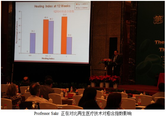 埃及亞歷山大大學(xué)醫(yī)學(xué)系外科教授、國(guó)際外科醫(yī)師學(xué)會(huì)會(huì)員Mahmoud F. Sakr 醫(yī)生也是一位再生醫(yī)療技術(shù)臨   床經(jīng)驗(yàn)豐富的專家。他演講的題目為:濕潤(rùn)燒傷膏在糖尿病足愈合過程中的作用。首先 Sakr 教授詳細(xì)的分析了糖尿病潰瘍發(fā)病的機(jī)理,分類以及常用治療方法。同時(shí)也指出,糖尿病患者潰瘍發(fā)病率居高不下的原因以及為何糖尿病潰瘍是醫(yī)生最棘手的問題之一。通常對(duì)于嚴(yán)重糖尿病足潰瘍患者而言,截肢往往是不得不選擇的保住性命的辦法。而再生醫(yī)療技術(shù)卻能夠在常規(guī)糖尿病治療前提下,治愈糖尿病潰瘍創(chuàng)面尤其是經(jīng)久不愈的糖尿病創(chuàng)面而避免截肢,很大程度上減少了患者截肢后帶來(lái)的生理與心里上的創(chuàng)傷。再生醫(yī)療技術(shù)不僅僅能夠明顯減小潰瘍表面積同時(shí)也縮短了創(chuàng)面愈合時(shí)間。是治療糖尿病足的不二之選。