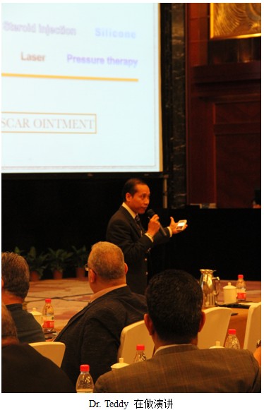 隨后,印尼Cipto Mangunkusumo整形外科醫(yī)生、印尼臨床教育培訓(xùn)中心主席Teddy O.H. Prasetyono 以瘢痕為主的愈合為題介紹了再生醫(yī)療技術(shù)在整形修復(fù)外科的使用經(jīng)驗(yàn)。他生動(dòng)形象的演講深深吸引了與會(huì)代表,最后總結(jié)道:此項(xiàng)技術(shù)必將成為未來(lái)燒傷治療的首選方法。