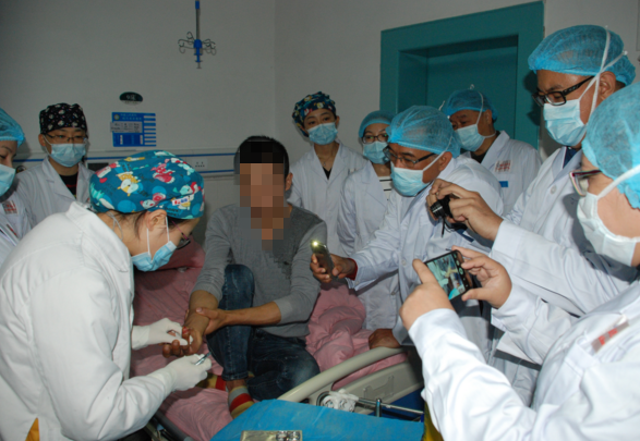 故事的開(kāi)頭,發(fā)生于5月14日。這天,迫于生計(jì)而早早輟學(xué)從事汽修的四川省夾江縣農(nóng)家子弟周耀被泄露燃爆的煤氣罐燒傷,他全身燒傷面積多達(dá)68%,被家人緊急送到一家大型三甲醫(yī)院燒傷科救治。然而,在醫(yī)治了3個(gè)月零4天后,雖然命保住了,但家庭已經(jīng)負(fù)債累累,不幸的是,由于反復(fù)感染,尚有40%多的創(chuàng)面難以愈合,而且手和頸部出現(xiàn)攣縮,如此狀況讓醫(yī)生束手無(wú)策,生命警報(bào)再次拉響。就在治療陷入困境的時(shí)候,周耀的家人決定反常規(guī)地“逆向轉(zhuǎn)院”,他們要轉(zhuǎn)去的地方,是成都市郫都區(qū)人民醫(yī)院燒傷科。很多親屬對(duì)他們的轉(zhuǎn)院行為非常不解:“重大疾病時(shí)人家都往大醫(yī)院轉(zhuǎn),你們?yōu)樯兑鶇^(qū)縣級(jí)醫(yī)院轉(zhuǎn)?”但周耀的父親卻說(shuō),他了解過(guò)醫(yī)院的情況,“郫都區(qū)人民醫(yī)院燒傷科有全國(guó)知名的燒傷瘡瘍專家付子俊和他的弟子王鄉(xiāng)寧,他們有目前最為先進(jìn)的燒傷創(chuàng)瘍?cè)偕t(yī)療技術(shù)。”于是在8月20日,周耀被轉(zhuǎn)入郫都區(qū)人民醫(yī)院燒傷科,在這里,又拉開(kāi)一段感人的故事。