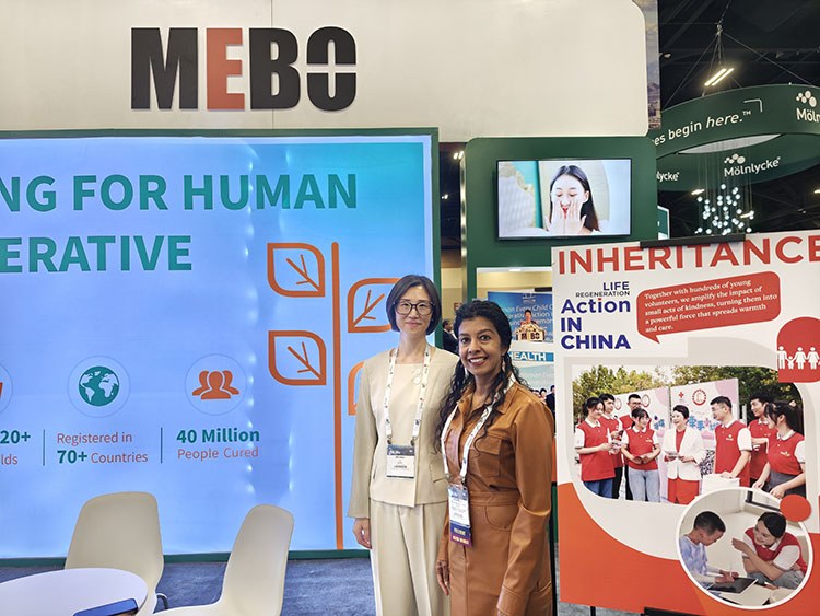 除了產(chǎn)品的展示,此次大會(huì)上還特別開啟了“生命再生行動(dòng)”全球巡展北美首展,引發(fā)與會(huì)者的廣泛關(guān)注。該巡展通過一系列圖文并茂的海報(bào),系統(tǒng)展示了十年中“生命再生行動(dòng)”在技術(shù)培訓(xùn)、災(zāi)難救援與關(guān)愛婦女兒童等方面開展的多項(xiàng)行動(dòng)。本屆主席 Sharmila Dissanaike特地來到展臺(tái)了解此次巡展,并對(duì)美寶國際致力于提升全球生命質(zhì)量的企業(yè)社會(huì)責(zé)任給予高度評(píng)價(jià)。值得提及的是,一位來自秘魯?shù)尼t(yī)生看到在秘魯利馬開展的燒傷兒童救治行動(dòng)激動(dòng)不已,感謝此次行動(dòng)對(duì)于其國家的幫助。另一位黎巴嫩醫(yī)生看到援助行動(dòng)助力貝魯特港口爆炸后的醫(yī)院重建,十分感動(dòng)。此次巡展也成為本屆大會(huì)中獨(dú)有的以全球視角展示企業(yè)公益實(shí)踐的項(xiàng)目。