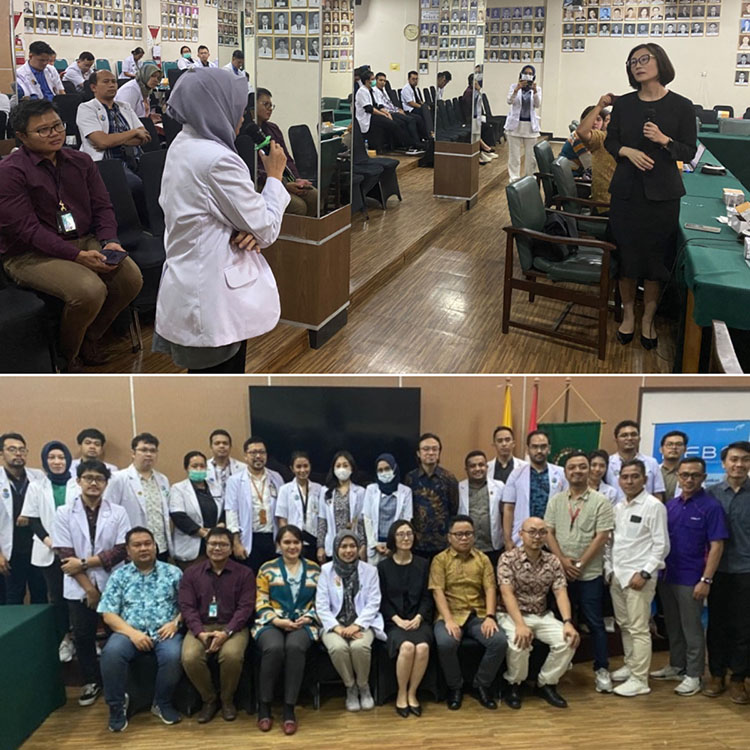 7月24日至25日,美寶國際的學術足跡延伸至西爪哇省首府萬隆市,在當地最大的教學醫(yī)院Hasan Sadikin與60余名醫(yī)療專業(yè)人士進行了學術交流與分享。徐巍巍主任圍繞慢性創(chuàng)面護理與治療,深入剖析了再生醫(yī)療技術的作用機制、適應癥范圍及學術研究成果,為參會者提供了生動的講解及答疑。交流之余,醫(yī)院科室負責人Dr Almahita Cintami Putri的引領參觀,更是讓美寶國際團隊對印尼醫(yī)療體系有了更為直觀和深入的了解。