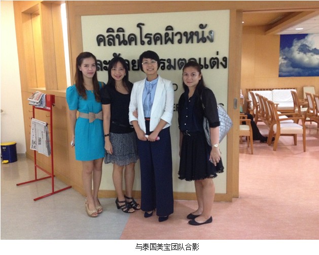 11月11日,由泰國(guó)經(jīng)銷商美寶團(tuán)隊(duì)成員Ms. Chantana 和Ms. Kittirat 帶領(lǐng),美寶團(tuán)隊(duì)拜會(huì)了曼谷一家私立醫(yī)院Vichaiyut Hospital的重點(diǎn)醫(yī)生,該醫(yī)生自從在讀醫(yī)學(xué)院時(shí)就了解并開始使用美寶,至今已有約10年的時(shí)間,在她的領(lǐng)域主要是激光手術(shù)后的創(chuàng)面,張美艷詢問了醫(yī)生在結(jié)合激光治療疤痕方面的應(yīng)用,并向她展示了國(guó)內(nèi)專家在此方面應(yīng)用的成果。醫(yī)生表示驚喜,并表示會(huì)在以后的臨床中嘗試。