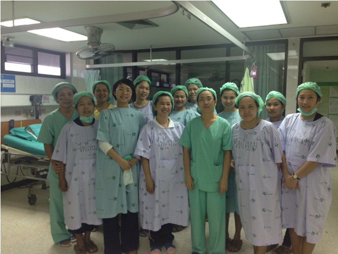 11月12日,凌晨6點(diǎn)出發(fā),美寶團(tuán)隊(duì)及Ms. Kittirat 驅(qū)車兩小時(shí)來到Rajburi Hospital, 這家醫(yī)院是該省的省立醫(yī)院,是西部較大的醫(yī)院之一,美寶已經(jīng)被納入該院的藥物目錄,但是應(yīng)用范圍仍然有限,僅用于一度燒傷及淺二度燒傷,對(duì)美寶的認(rèn)識(shí)有一定的誤區(qū),例如有的醫(yī)務(wù)人員認(rèn)為美寶不能用于面部等。這里的護(hù)士們很熱情,組織者很負(fù)責(zé),10人左右的小會(huì)議室坐了約35位護(hù)士,張美艷向護(hù)士們講解了標(biāo)準(zhǔn)換藥,尤其強(qiáng)調(diào)二次及以后換藥過程不用其它制劑,護(hù)士們的語(yǔ)言水平有限,但是熱情很高,可以隨時(shí)打斷講解并提問,幾位英文較好的護(hù)士主動(dòng)幫助其他護(hù)士們翻譯。護(hù)士們對(duì)所展示的病例表示驚嘆,這此CNE大大加深了她們對(duì)美寶的認(rèn)識(shí)。講解結(jié)束后,張美艷隨護(hù)士長(zhǎng)參觀了燒傷病房,該科室有8張床位,其中包括兩個(gè)單間,參觀時(shí)恰巧有一位糖尿病足患者等待換藥,張美艷及時(shí)糾正護(hù)士們的換藥方式,強(qiáng)調(diào)二次換藥不用鹽水清洗創(chuàng)面,并進(jìn)行了操作示范。