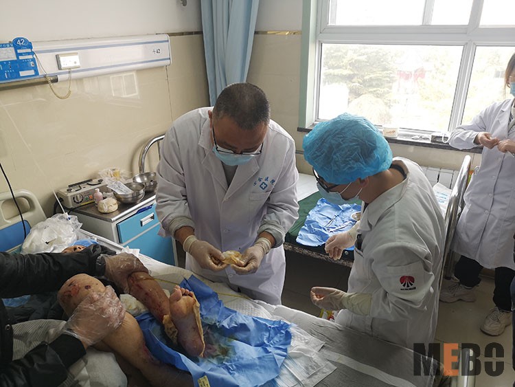 2020年3月10日,應(yīng)孝感市孝南區(qū)東山頭衛(wèi)生院邀請(qǐng),中國中西醫(yī)結(jié)合學(xué)會(huì)燒傷專業(yè)委員會(huì)副主任委員張強(qiáng)主任到該院會(huì)診了一位高齡低溫燙傷及糖尿病足患者,并現(xiàn)場演示規(guī)范換藥,隨后與科室醫(yī)生交流再生醫(yī)療技術(shù),大家表示收獲良多,對(duì)再生醫(yī)療技術(shù)有了進(jìn)一步的認(rèn)識(shí)!當(dāng)日下午,張強(qiáng)主任又來到孝南區(qū)三醫(yī)院對(duì)全體醫(yī)護(hù)進(jìn)行技術(shù)培訓(xùn),在科室會(huì)診了一例電火燒傷患者,并與付主任就技術(shù)及科室建設(shè)作了深入交流!