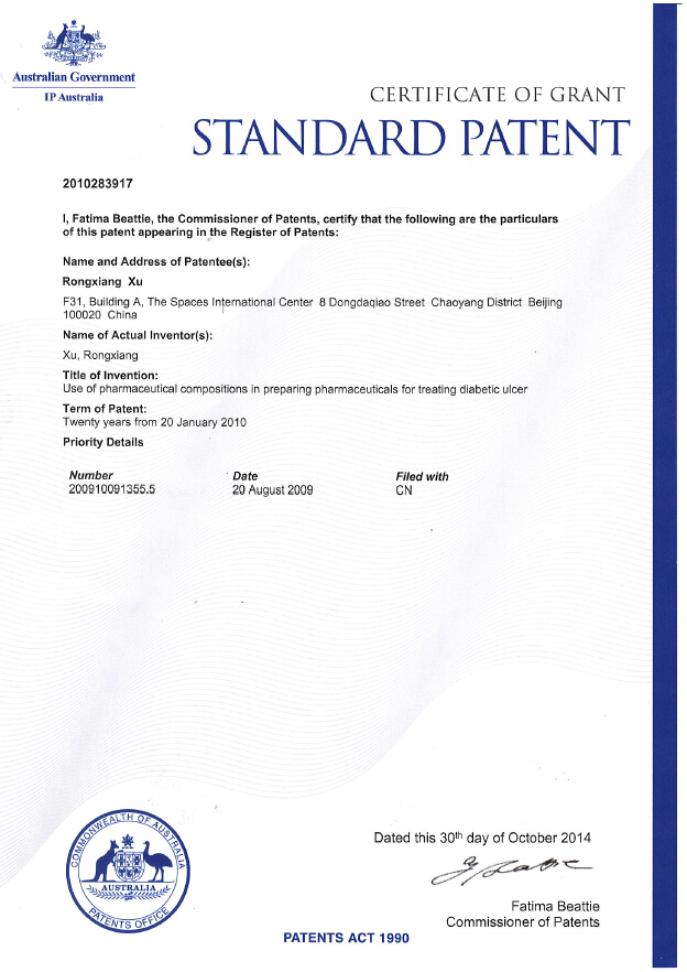 | No.200910091355.5 | 藥物組合物在制備治療糖尿病潰瘍藥物中的用途 | 查看 |