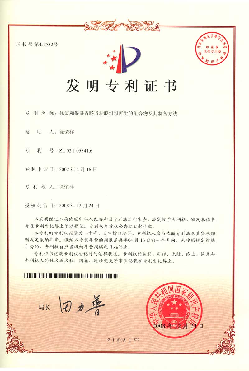 | 02105541.6 | 修復(fù)和促進(jìn)胃腸道粘膜組織再生的組合物及其制備方法 | 查看 |