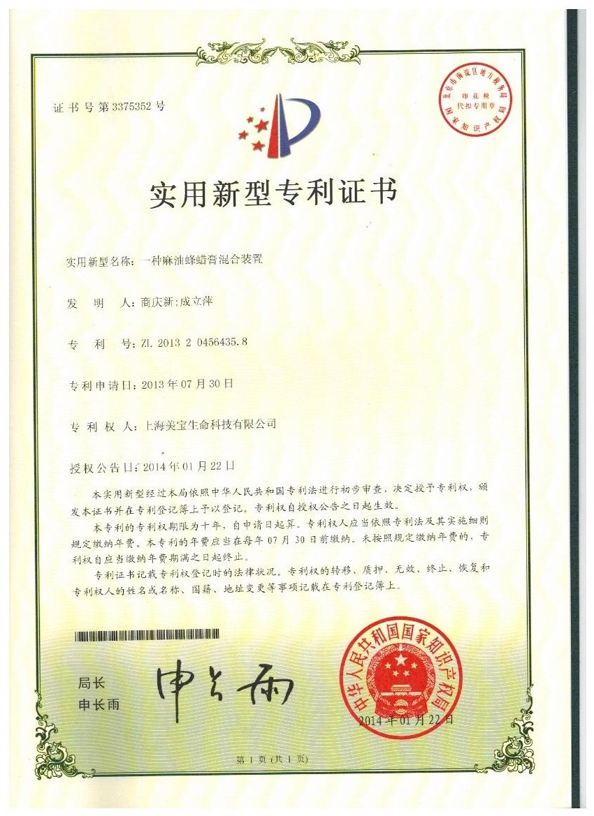 | ZL201320456435.8 | 一種麻油蜂蠟膏混合裝置 | 查看 |