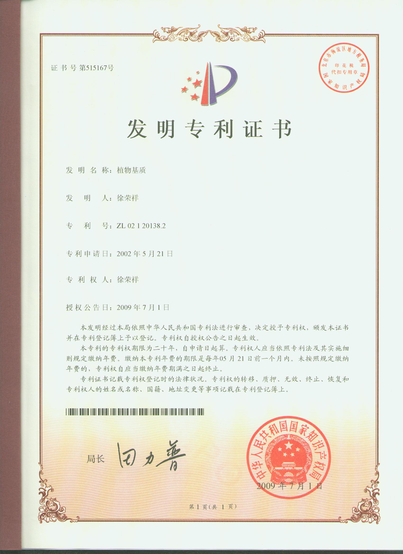 | ZL02120138.2 | 植物基質(zhì) | 查看 |