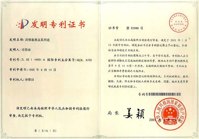 | 0763362(96401820.4) | 藥物基質(zhì)及其用途 | 查看 |