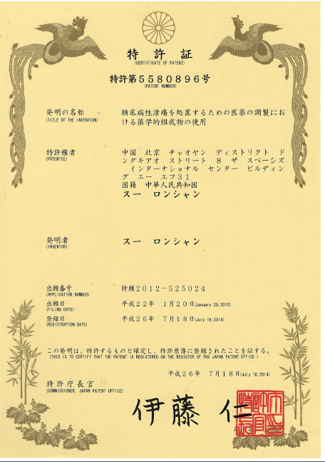 | No.2011/04971 | 藥物組合物在制備治療糖尿病潰瘍藥物中的用途 | 查看 |