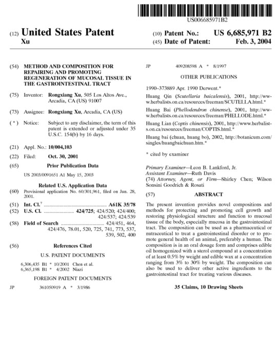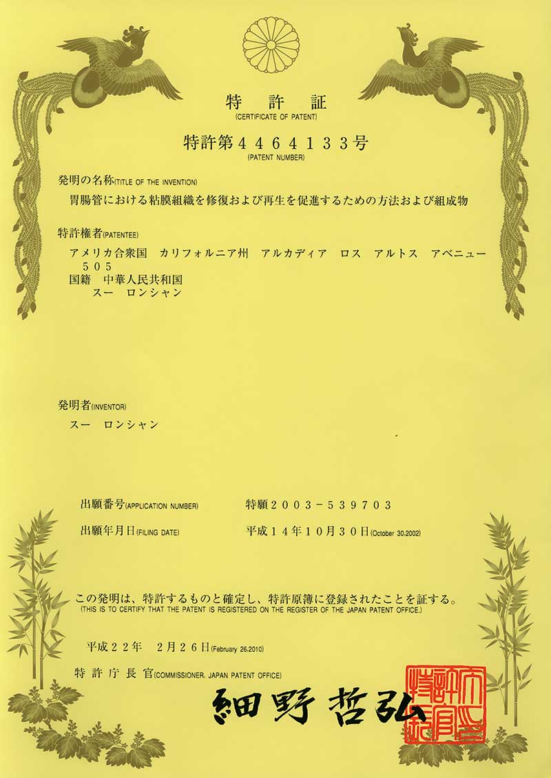 | 02773952.3 | 修復(fù)和促進(jìn)胃腸道粘膜組織再生的方法和物質(zhì)組合 | 查看 |