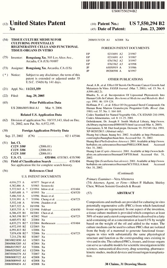 | 7550294 B2 | 潛能再生細(xì)胞與功能組織器官體外組織培養(yǎng)基 | 查看 |